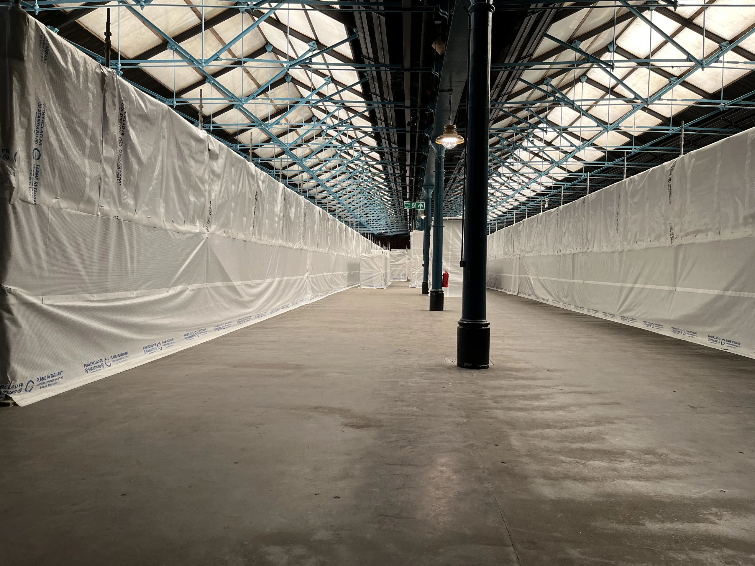 The protection works within Station Hall were not the first protection works that Naomi had led for a Nationally important collection and she knew the importance of working alongside the Curatorial team, the Operational staff and the Estates Team, in order to deliver a scheme which was suitable for it’s location, whilst allowing access for maintenance and care of the collection and the building. It was critical to find the right Architect and Scaffold company to work with. Buttress Architects and 3d Scaffolding created design proposals which provided immediate protection from the weather and provided access and for the care of the collection.